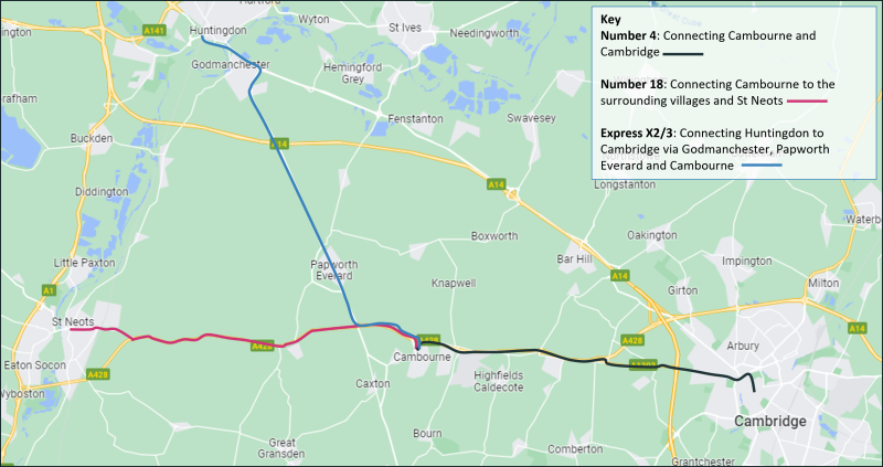 We are easily accessed by bus from a number of surrounding towns and villages, as well as the city of Cambridge. The below map shows the three main bus routes to Cambourne. The bus stop on Cambourne Road brings you within 5 minutes of our site. Students joining us from outside Cambourne are eligible for a ‘Tiger Bus Pass’, which makes all fares £1 anywhere in Cambridgeshire. You can apply for your FREE Tiger Bus Pass here: £1 Bus Fare - Cambridgeshire & Peterborough Combined Authority (cambridgeshirepeterborough-ca.gov.uk).